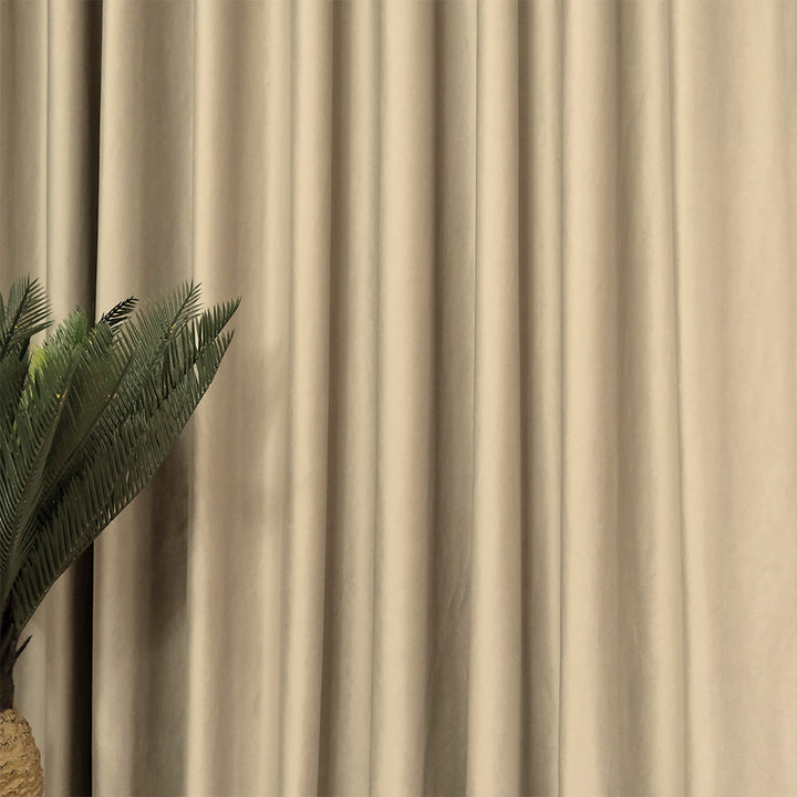 Samt Vorhang 80% Verdunkelung Hellbeige – mit Kräuselband (1 Stück)