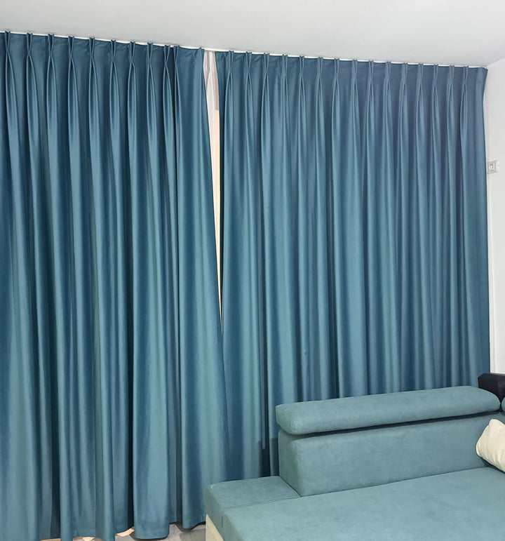Samt Vorhang 80% Verdunkelung Helles Türkis – mit Kräuselband (1 Stück)