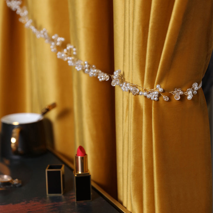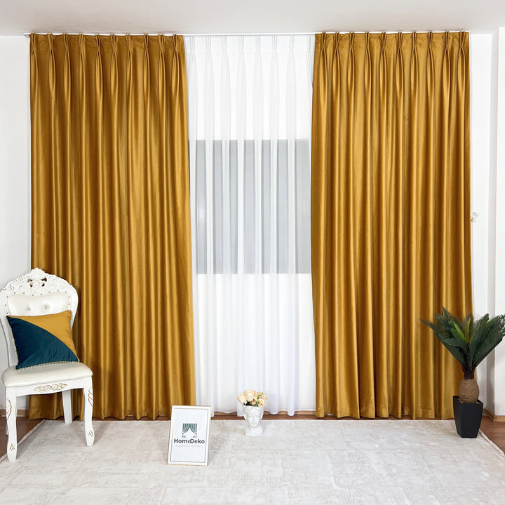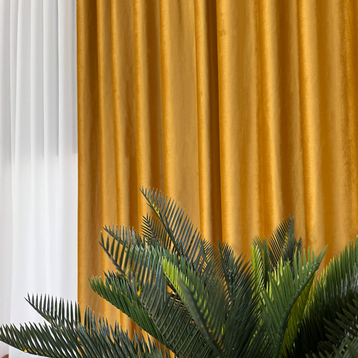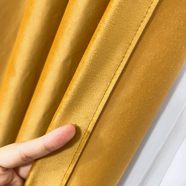 Samt Vorhang 80% Verdunkelung Senf – mit Kräuselband (1 Stück)