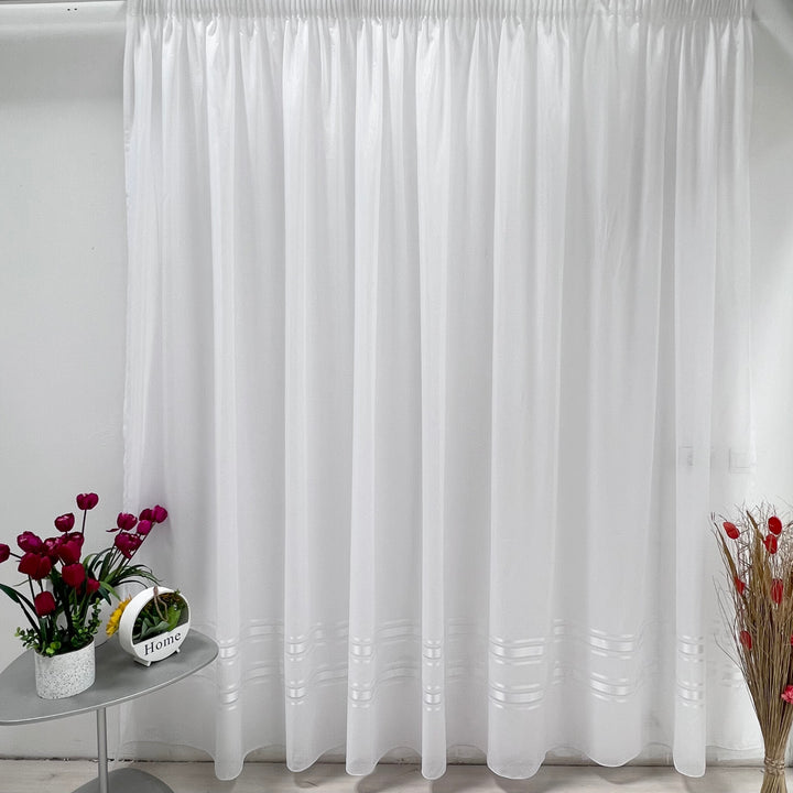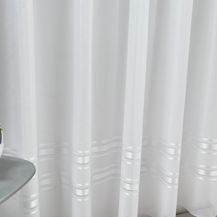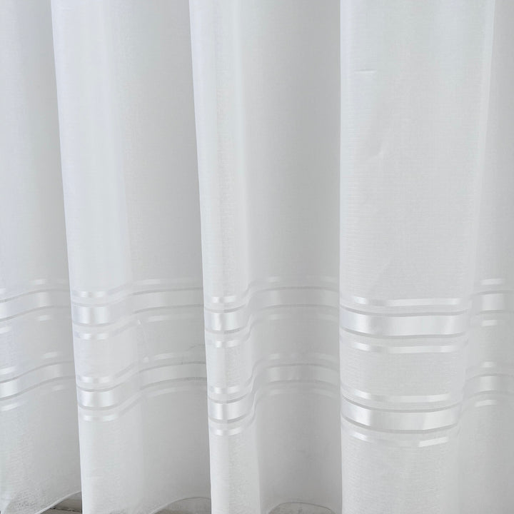 Gardine Voile mit Streifen Silber Weiß – mit Kräuselband (1 Stück)