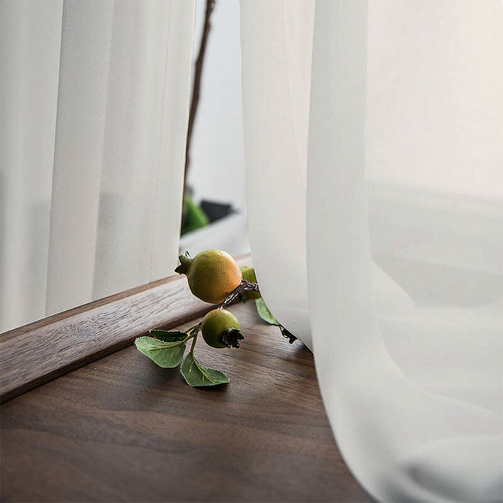 Das Netzgewebe ermöglicht es dem natürlichen Licht, in den Raum einzudringen, wodurch ein strahlender und einladender Effekt entsteht. Der Vorhang lässt den Raum höher wirken, besonders wenn er bodenlang gewählt wird.