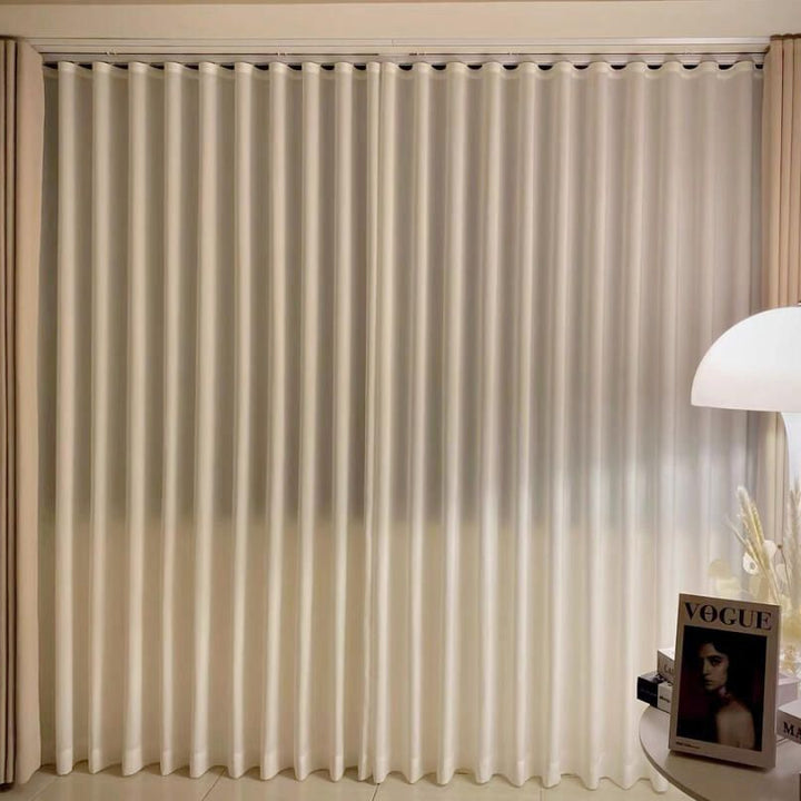 Der Preis pro Laufmeter entspricht der Differenz der Arbeitskosten im Vergleich zur einfachen Gardine, die bereits im Preis unserer Produkte enthalten ist.