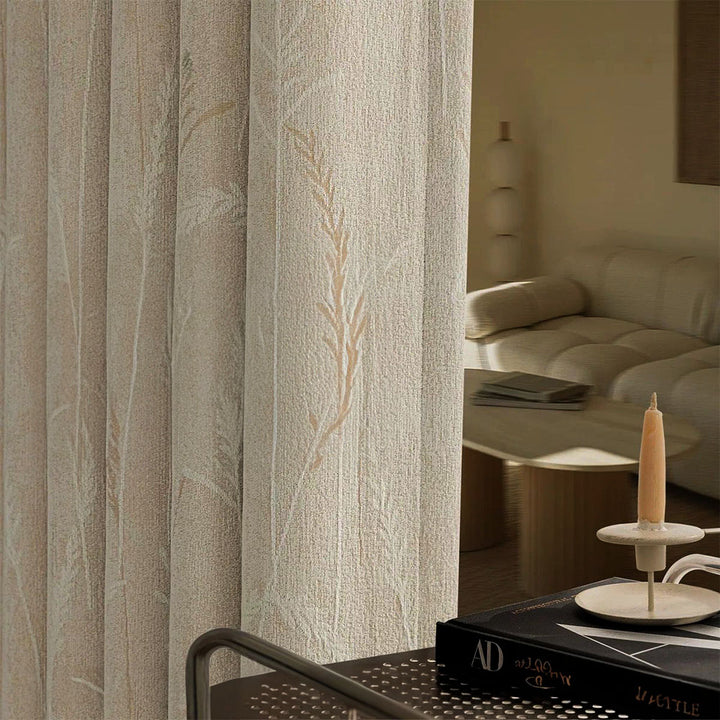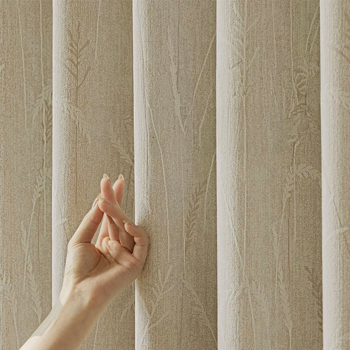 Vorhang Creamy Velvet floral Blumen Muster 95% Verdunkelung Creme – mit Kräuselband (1 Stück)