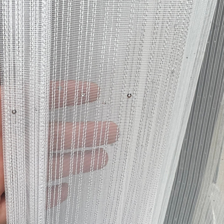 Das Netzgewebe ermöglicht es dem natürlichen Licht, in den Raum einzudringen, wodurch ein strahlender und einladender Effekt entsteht. Der Vorhang lässt den Raum höher wirken, besonders wenn er bodenlang gewählt wird.
