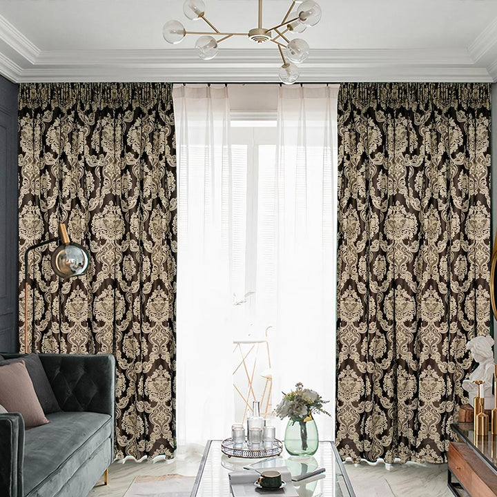 Vorhang Satingewebe Eleganz Muster blickdicht Braun – mit Kräuselband (1 Stück)