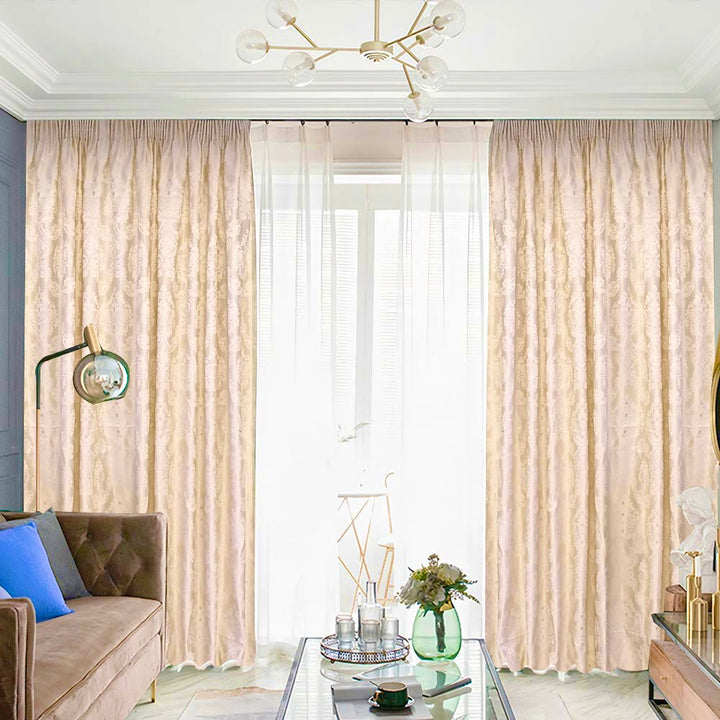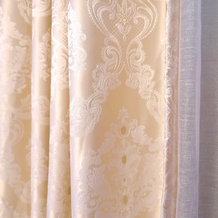 Vorhang Satingewebe Eleganz Muster blickdicht Creme – mit Kräuselband (1 Stück)