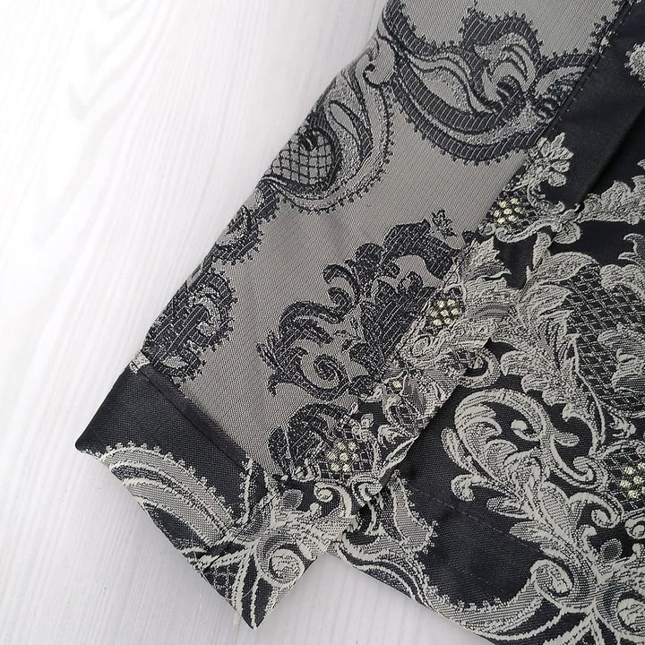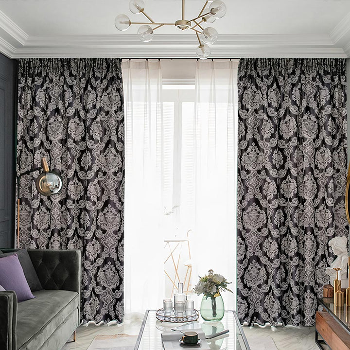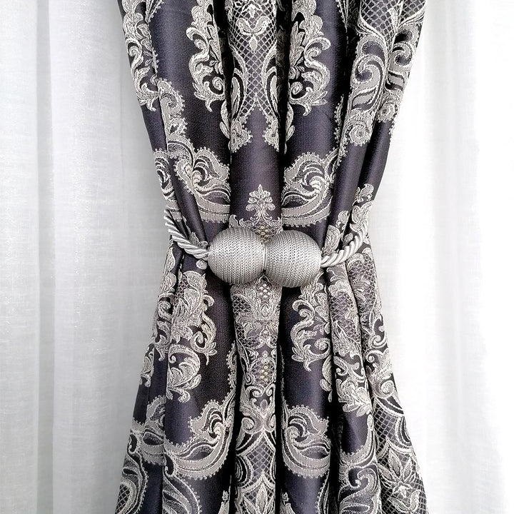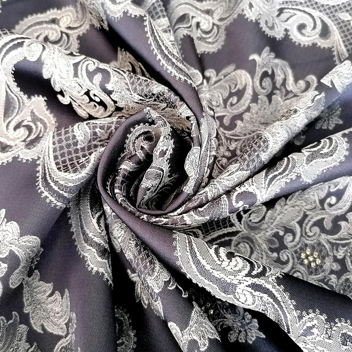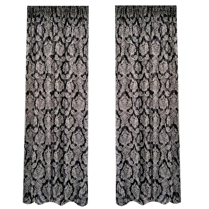 Vorhang Satingewebe Eleganz Muster blickdicht Grau – mit Kräuselband (1 Stück)
