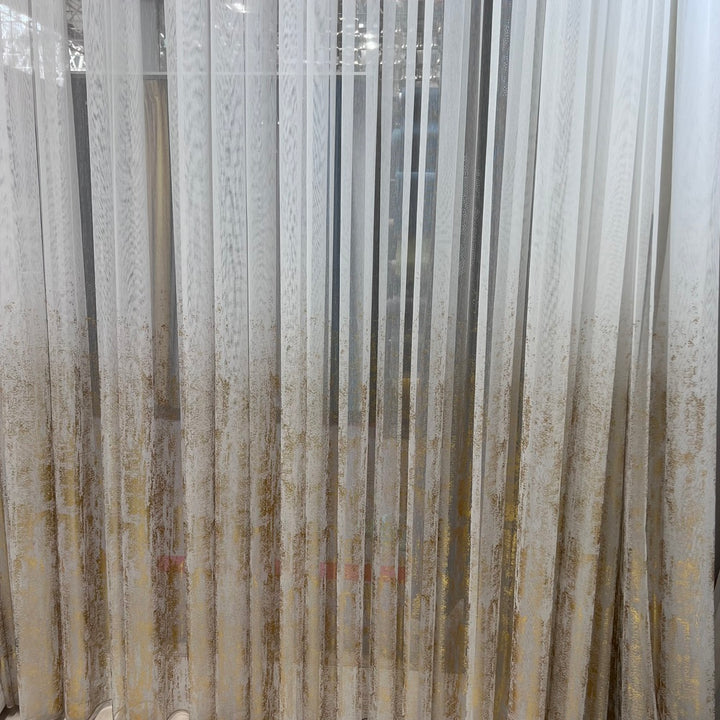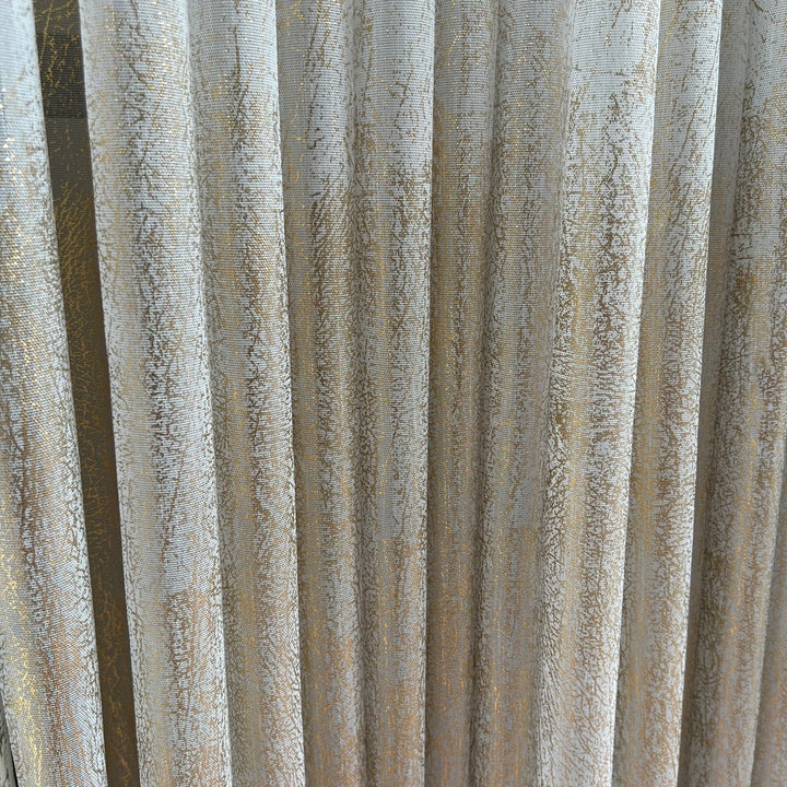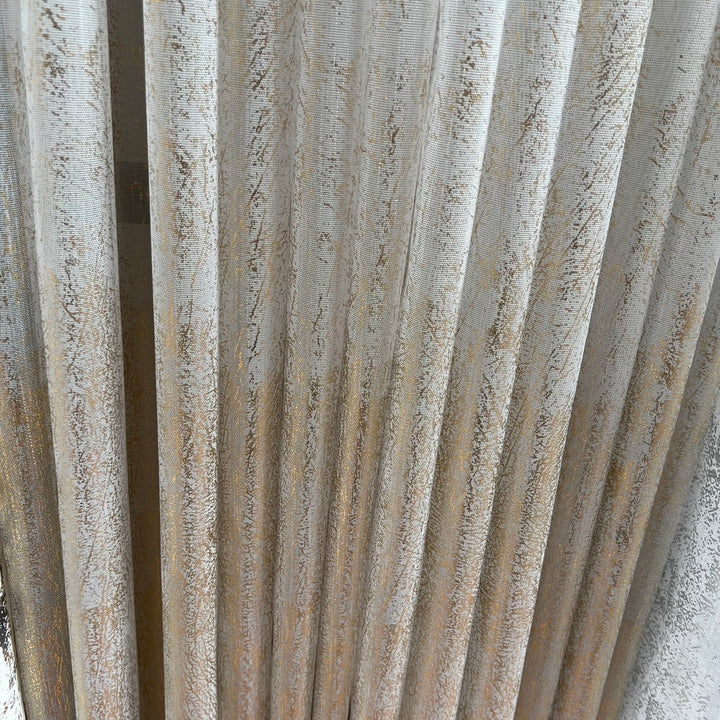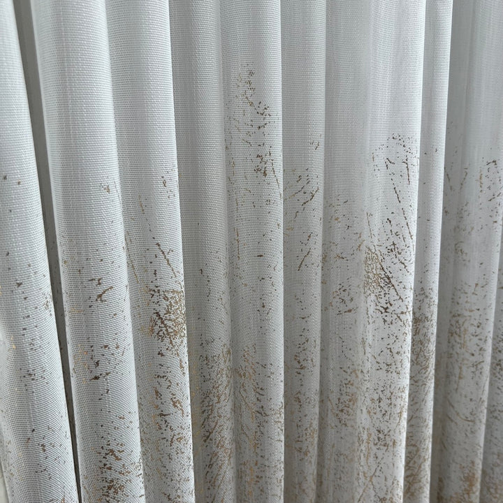 Gardine Natural mit Champagnergoldenem Druck – mit Kräuselband (1 Stück)
